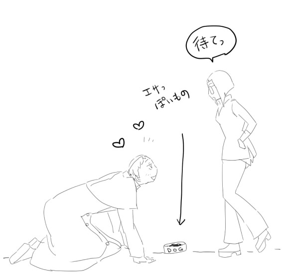 犬みたいにはいつくばって